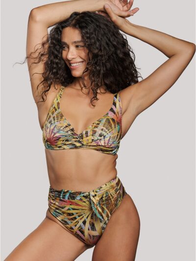 Crool High Waisted Bikini Bottom Gold Tropical