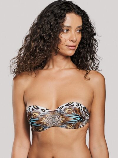 Crool Gathered Bikini Top Cup E Gold Tropical
