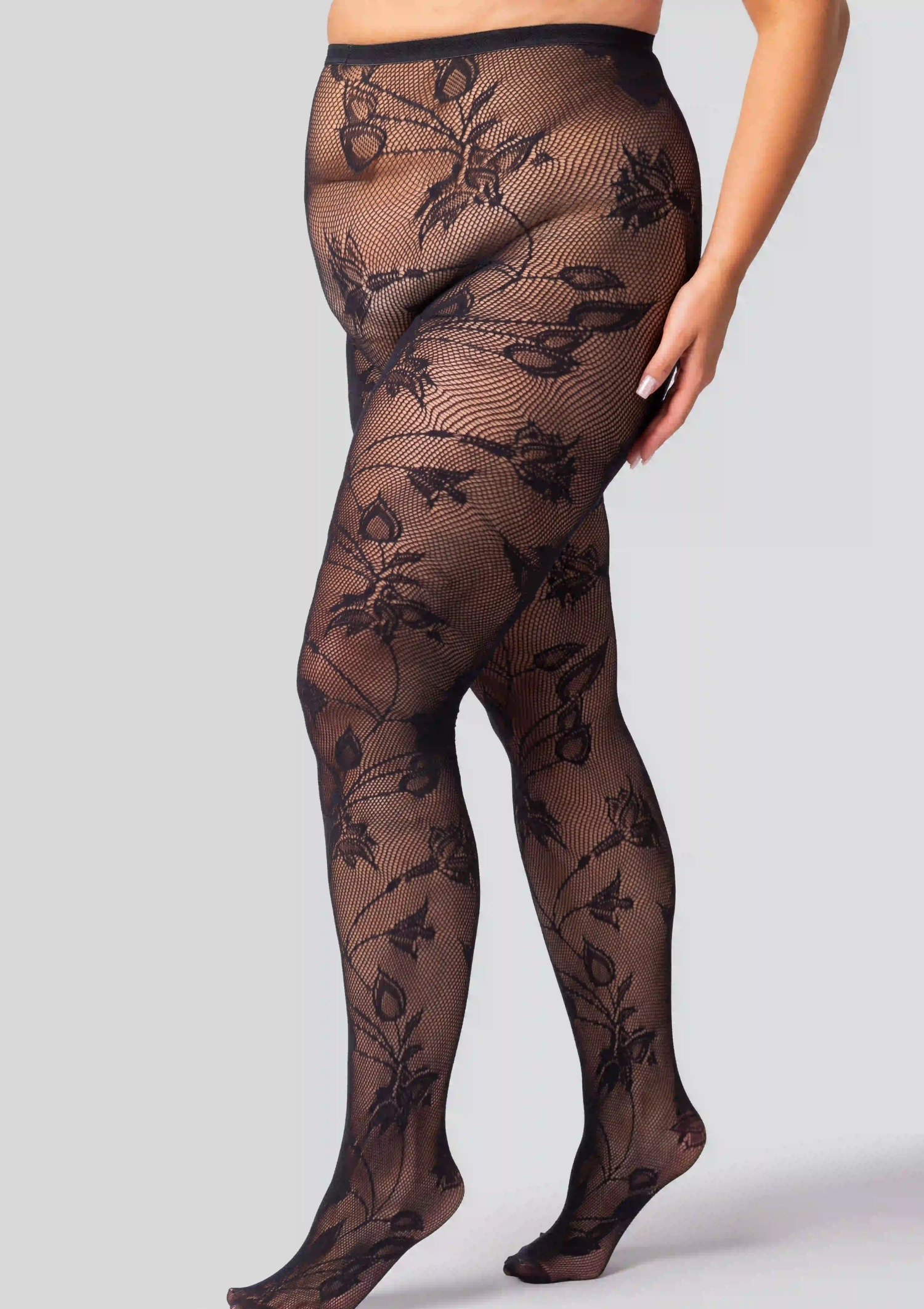 Κομψό διχτυωτό καλσόν plus size με λουλουδάτο μοτίβο. Ψηλόμεσο, ελαστικό και άνετο.