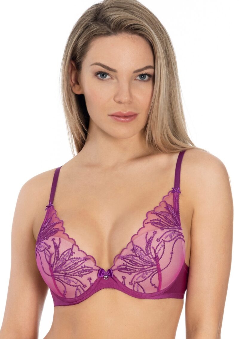 Bra for women who desire a fuller cleavage. The soft reinforced cups gently lift the breast, add volume and round it beautifully. The upper part of the cups has thin lace.