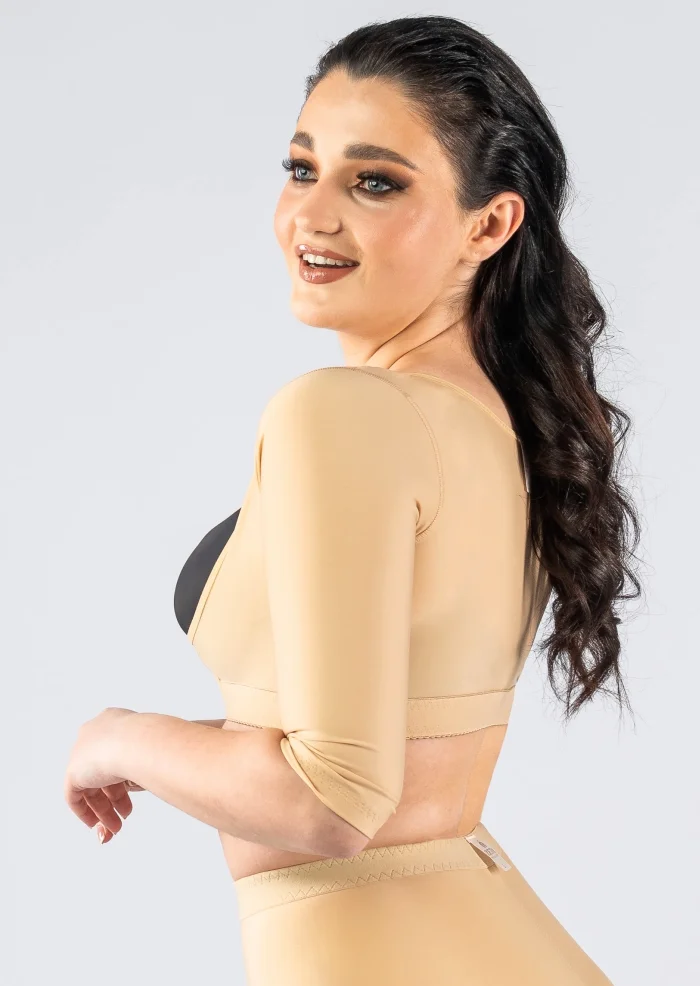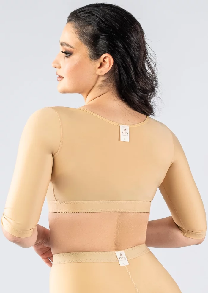 Zeta Arm Shaper este un tricou de compresie cu maneci 3/4, ideal pentru recuperarea dupa liposuctie, vaser lipo, dar si pentru utilizare zilnica. Are o țesătură moale care protejează inciziile de infecții și oferă îngrijirea de care aveți nevoie pentru pielea sensibilă pe toată perioada de reabilitare. Are 3 rânduri de cleme în față pentru o fixare ușoară chiar și atunci când aveți o mobilitate limitată. În plus, ajută la întreținerea unei poziții corecte, controlează spatele și umerii, astfel încât să poți sta drept toată ziua.
