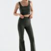 High-Waisted Flared Ribbed Leggings Khaki