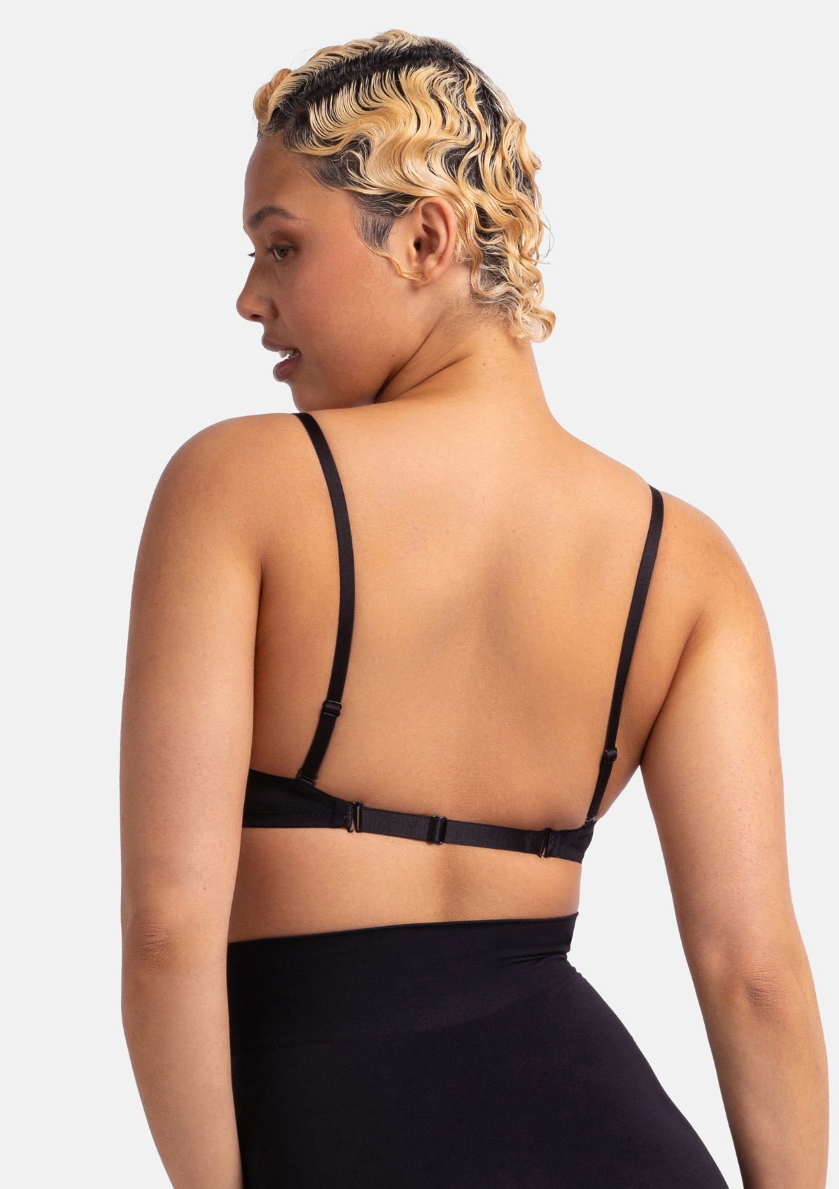 Wear it with or without straps – multiple styling options including low-back attachment for open-back outfits.