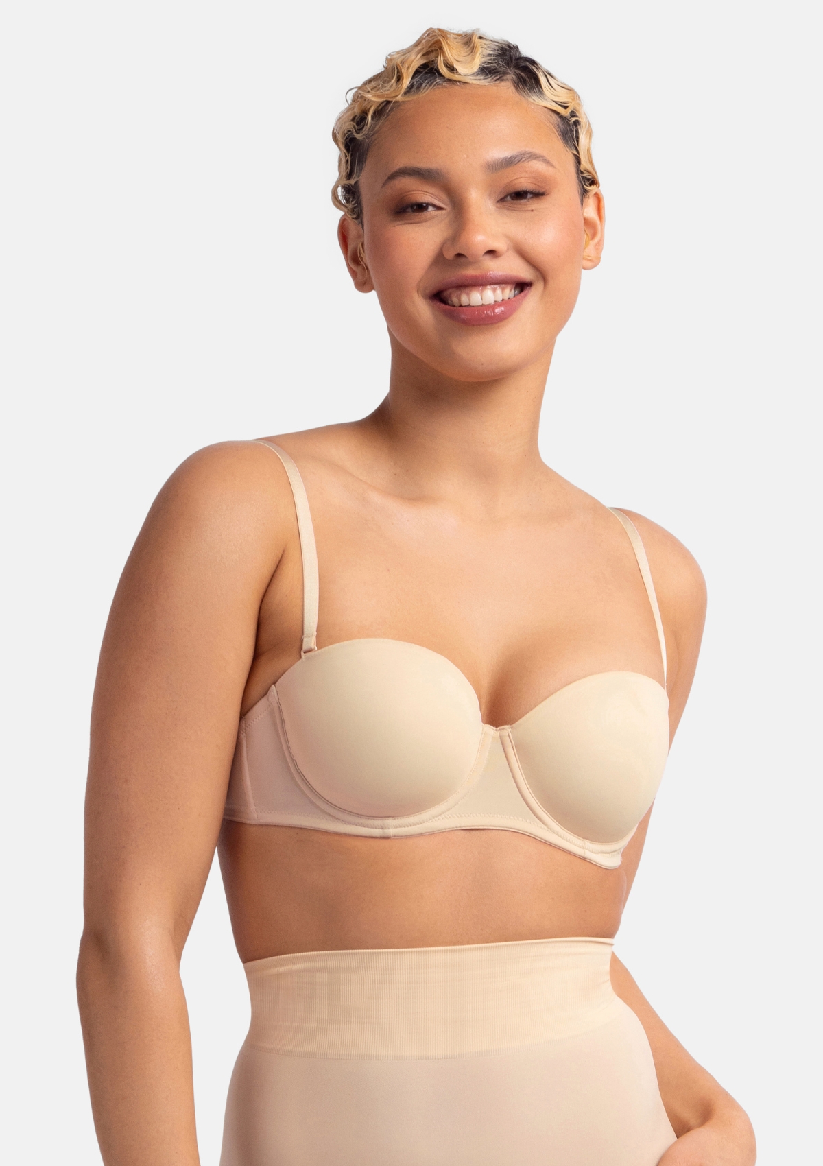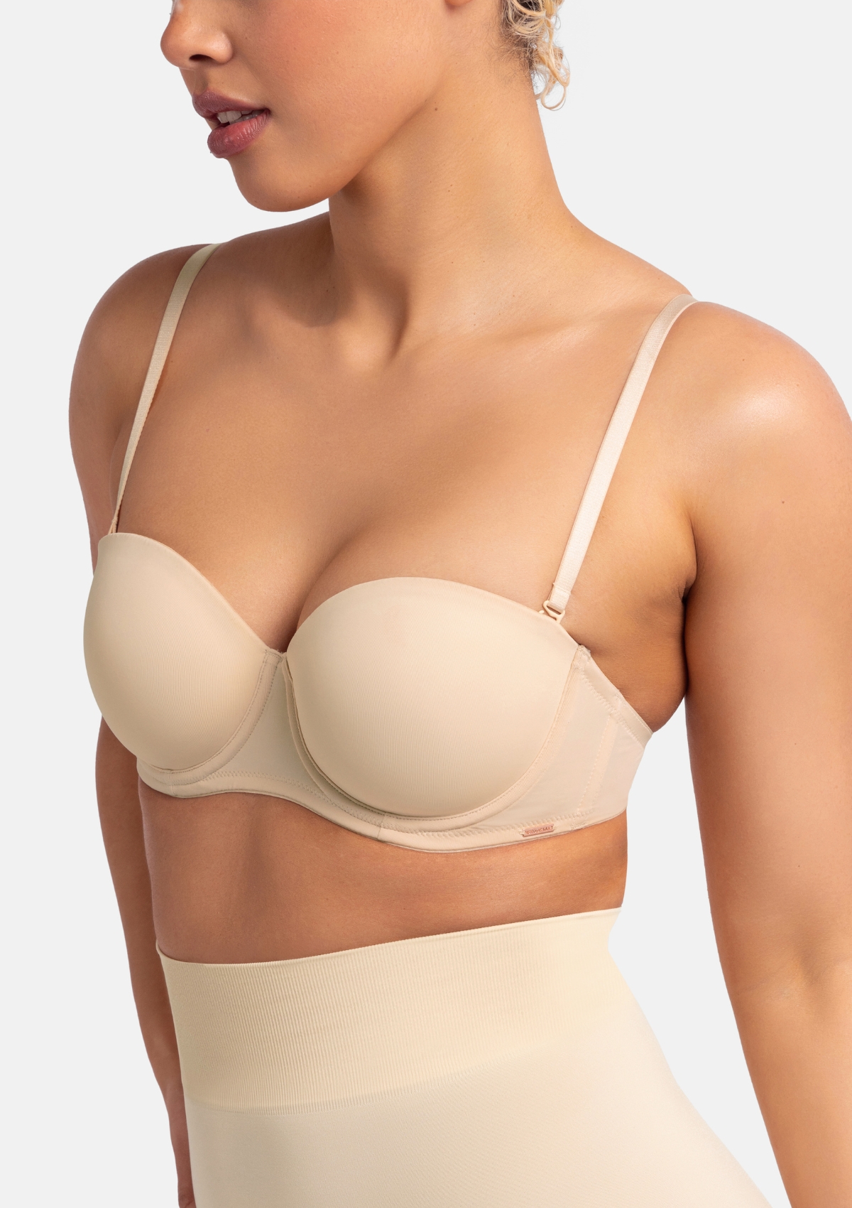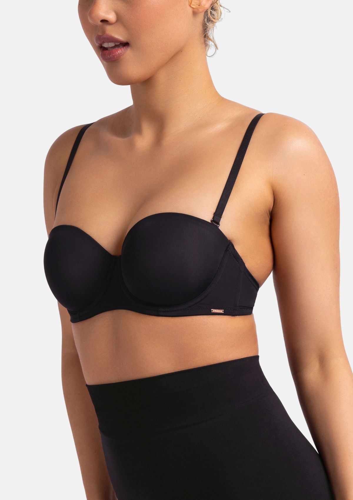Its soft padded cups enhance your natural shape while staying invisible under clothes. Designed with underwire and side boning, it offers reliable support even when worn strapless.