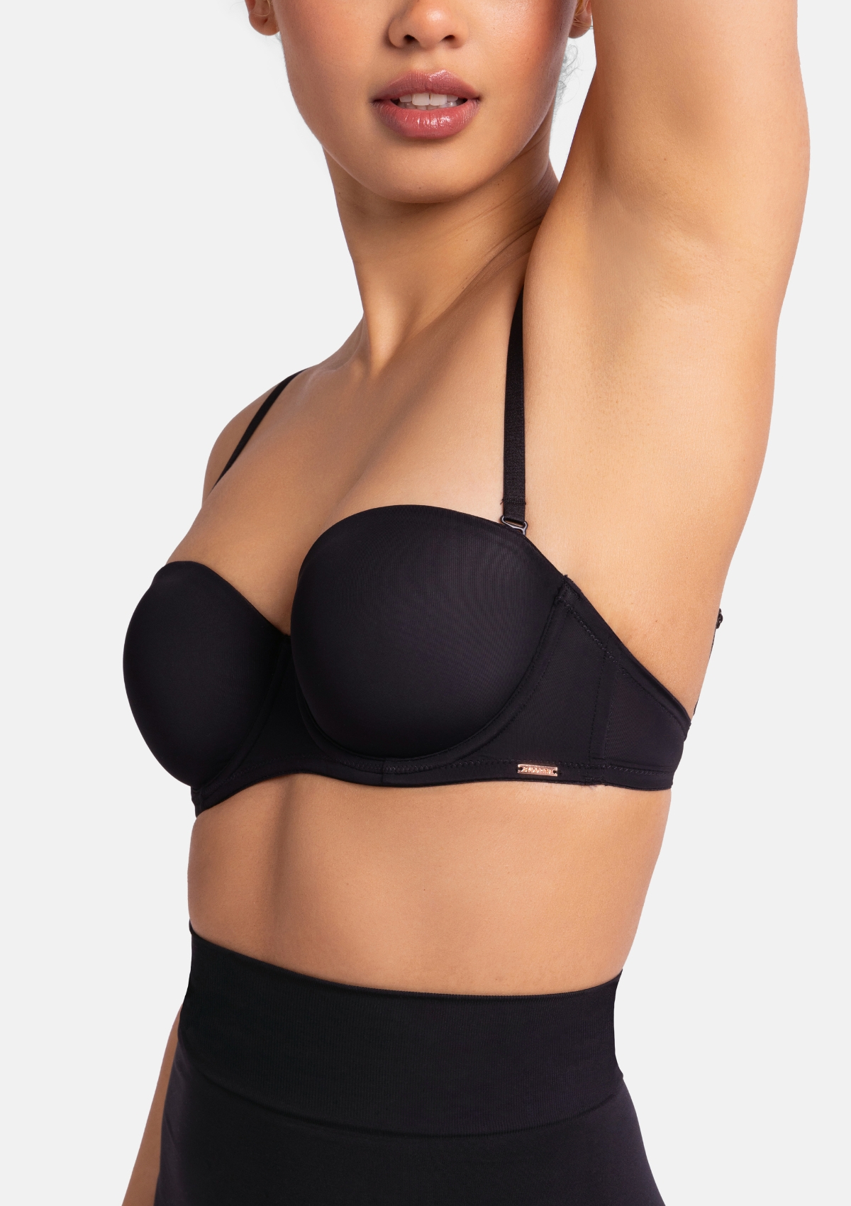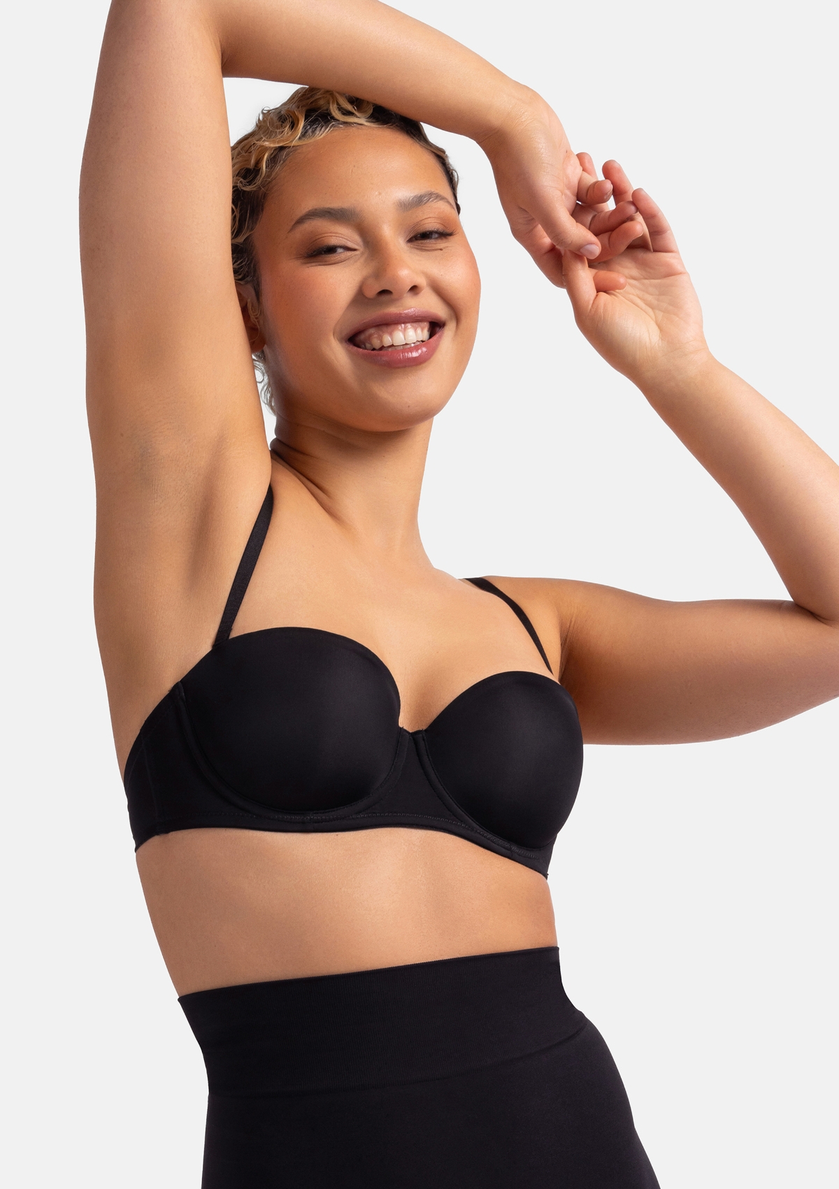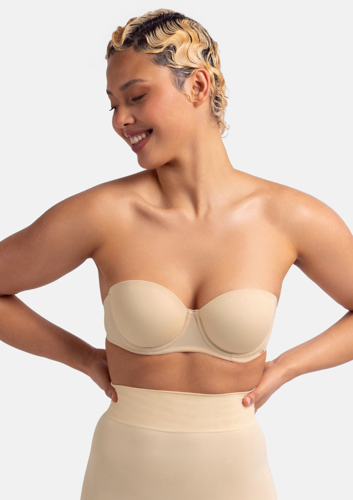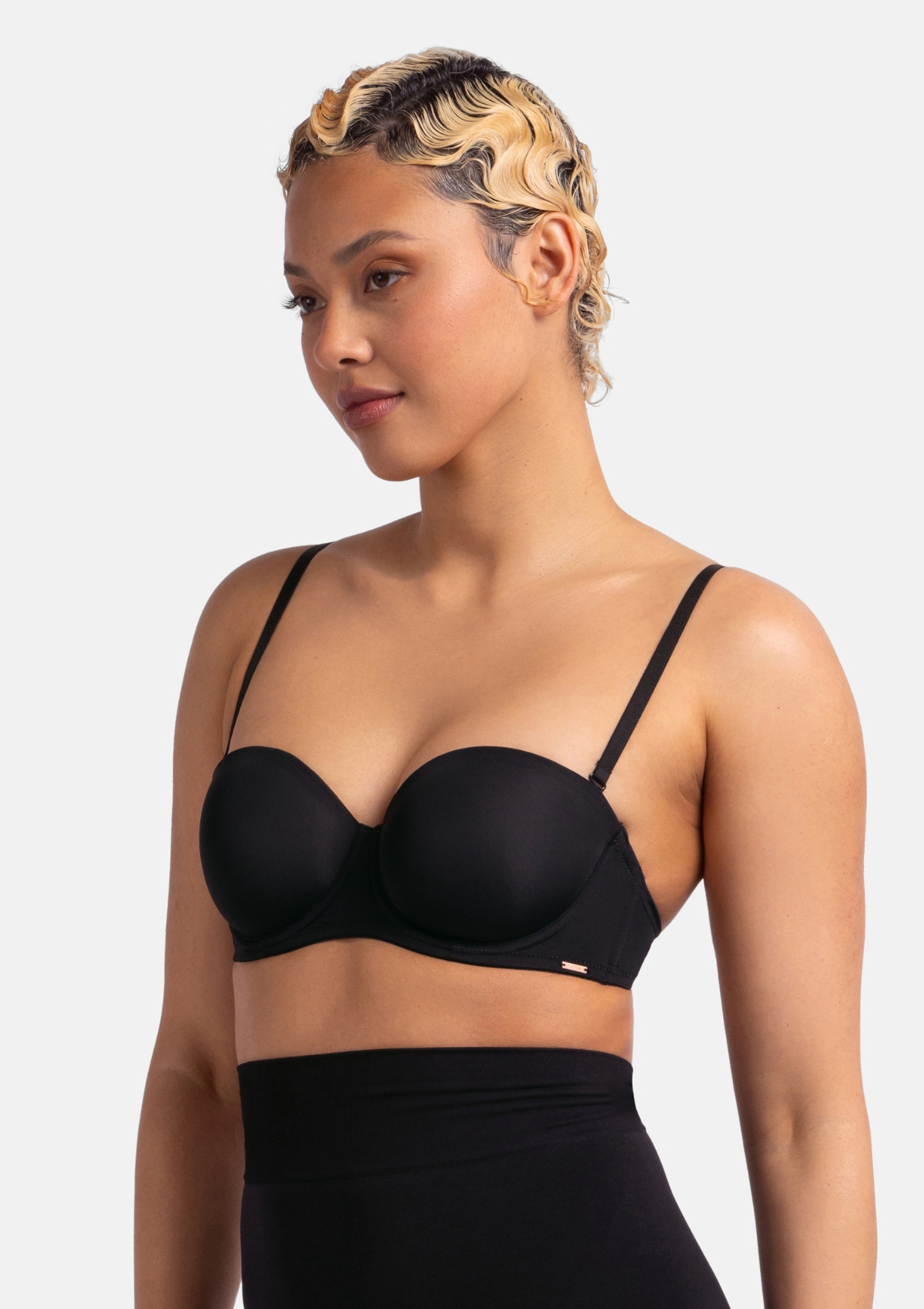 Its soft padded cups enhance your natural shape while staying invisible under clothes. Designed with underwire and side boning, it offers reliable support even when worn strapless.