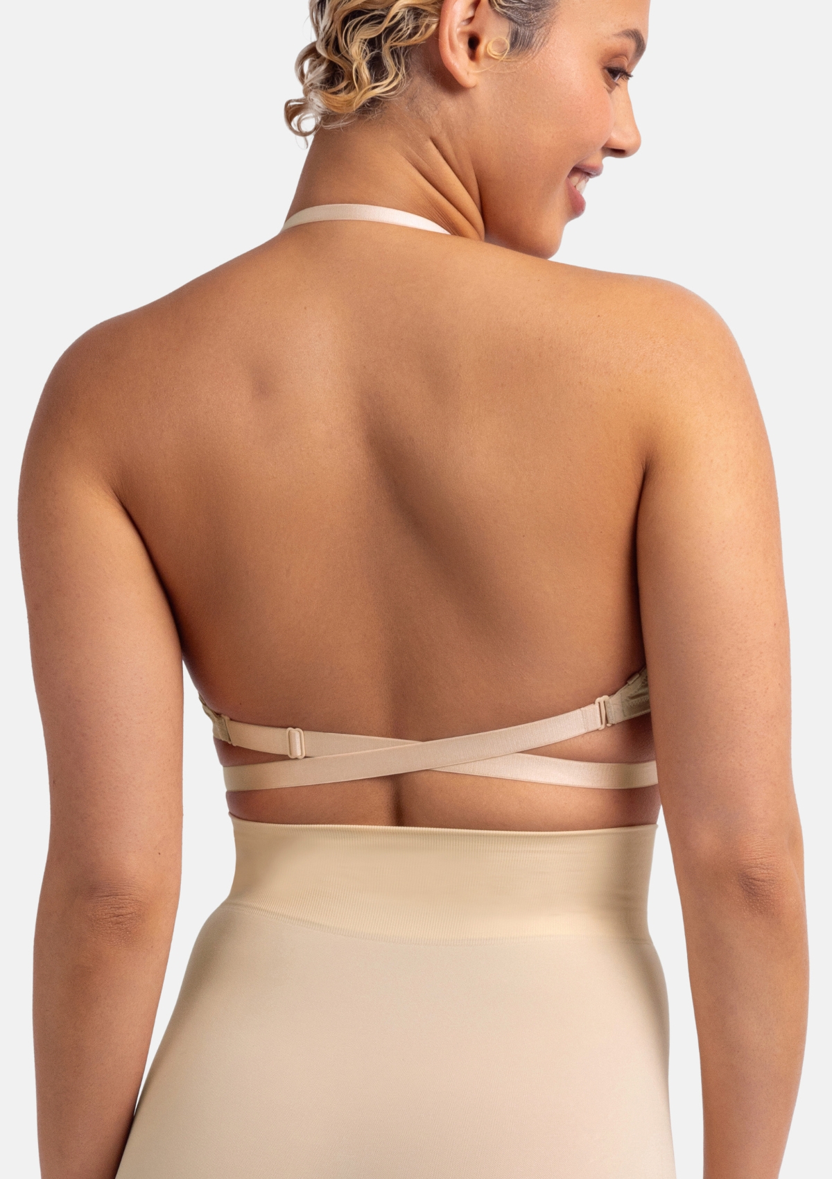 You can easily adjust or remove the multiway straps, wearing it classic, halter, cross, or completely strapless.