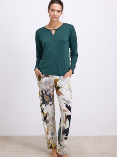 - Viscose pajamas set with long pants and long-sleeved top